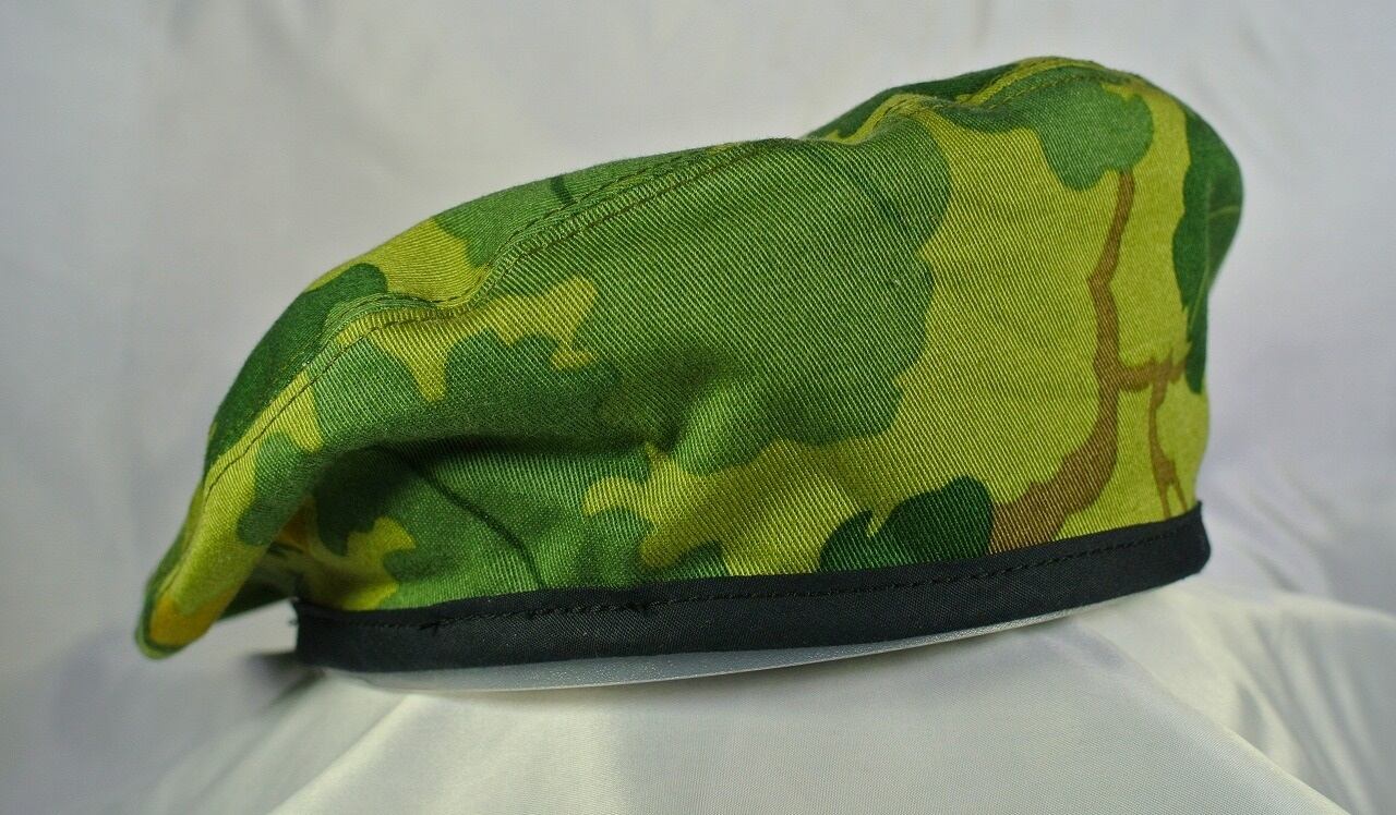 リーフ迷彩生地を使用してアメリカ軍型(右倒し型)のベレー帽を製作しました。